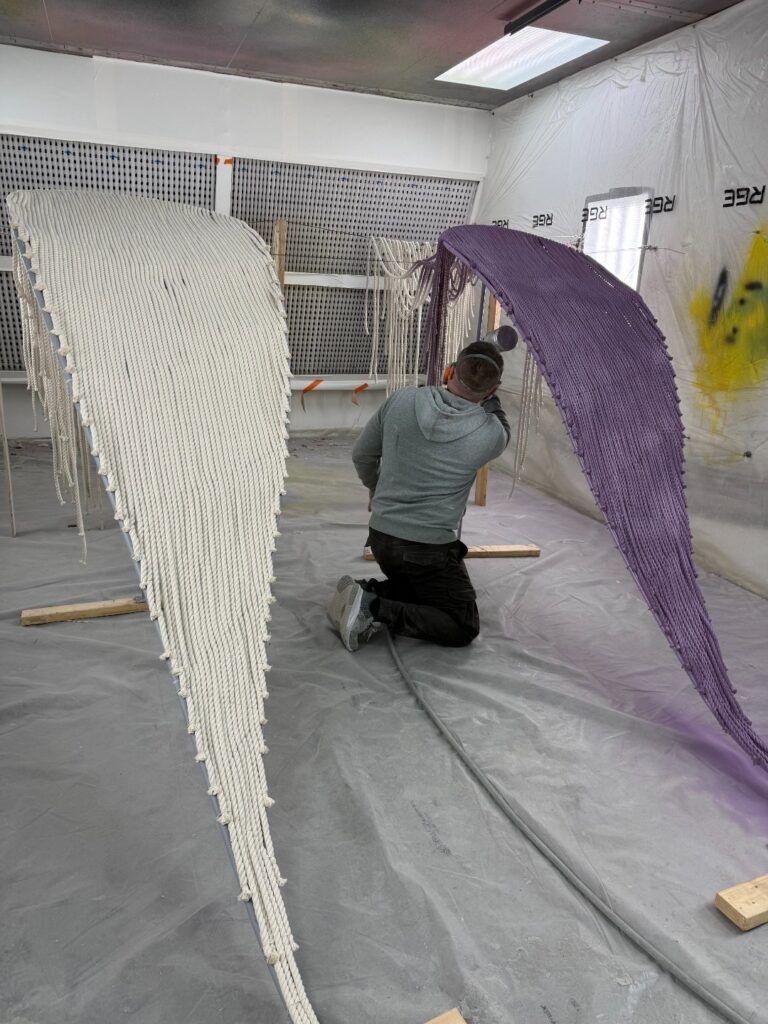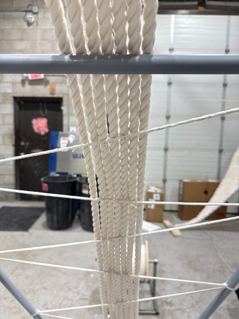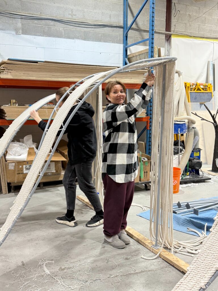 Sustainability is integral to the project. The installation is constructed using eco-conscious materials, including cotton cords, recycled polystyrene, and metal tubing, reinforcing Tacmelova’s commitment to responsible, human-centered design.