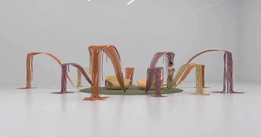Sustainability is integral to the project. The installation is constructed using eco-conscious materials, including cotton cords, recycled polystyrene, and metal tubing, reinforcing Tacmelova’s commitment to responsible, human-centered design.